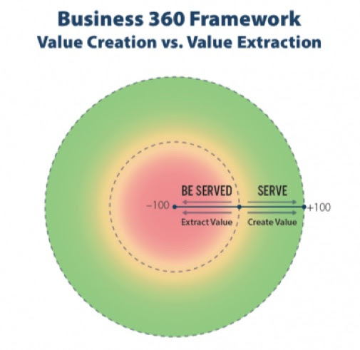 Where value creation is focused on serving, revenue extraction is obsessed with being served.